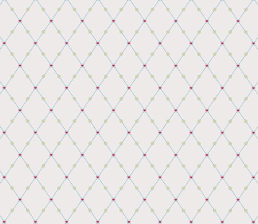 Transforme seus espaços com este papel de parede geométrico em losangos, que combina linhas pontilhadas delicadas e charmosos detalhes em formato de coração. O fundo claro traz leveza e sofisticação, enquanto os pequenos elementos decorativos adicionam um toque romântico e acolhedor.