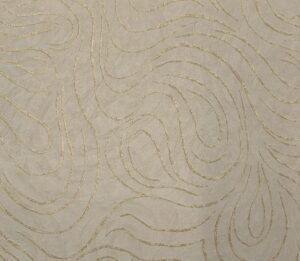 Este papel de parede possui um desenho orgânico de linhas onduladas em relevo, criando um efeito visual elegante e contemporâneo.