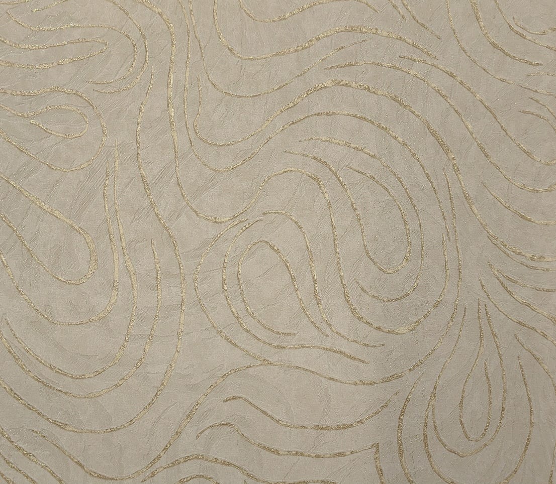 Este papel de parede possui um desenho orgânico de linhas onduladas em relevo, criando um efeito visual elegante e contemporâneo.